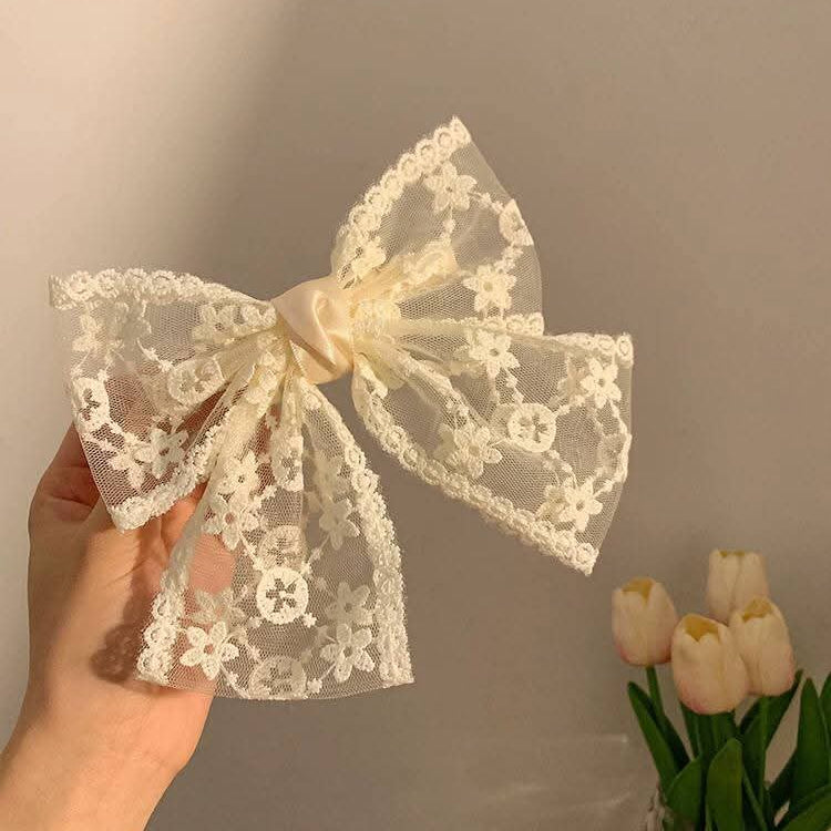 فيونكة دانتيل فاخرة بنقشة الورد، بتصميم كلاسيكي رقيق .