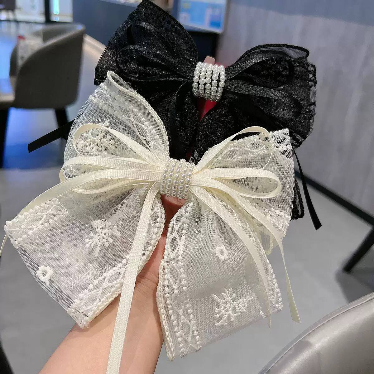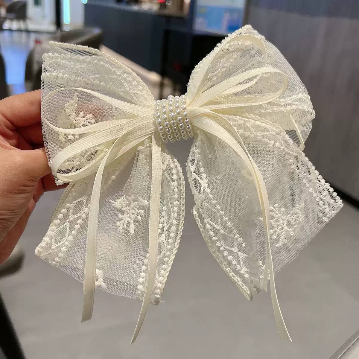 فيونكة دانتيل ملكية بمشبك منقار، مزينة بصفوف من اللولي .